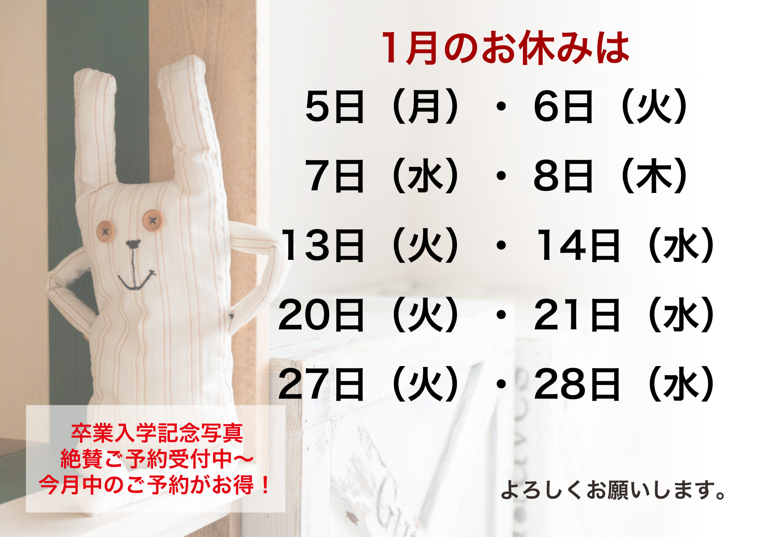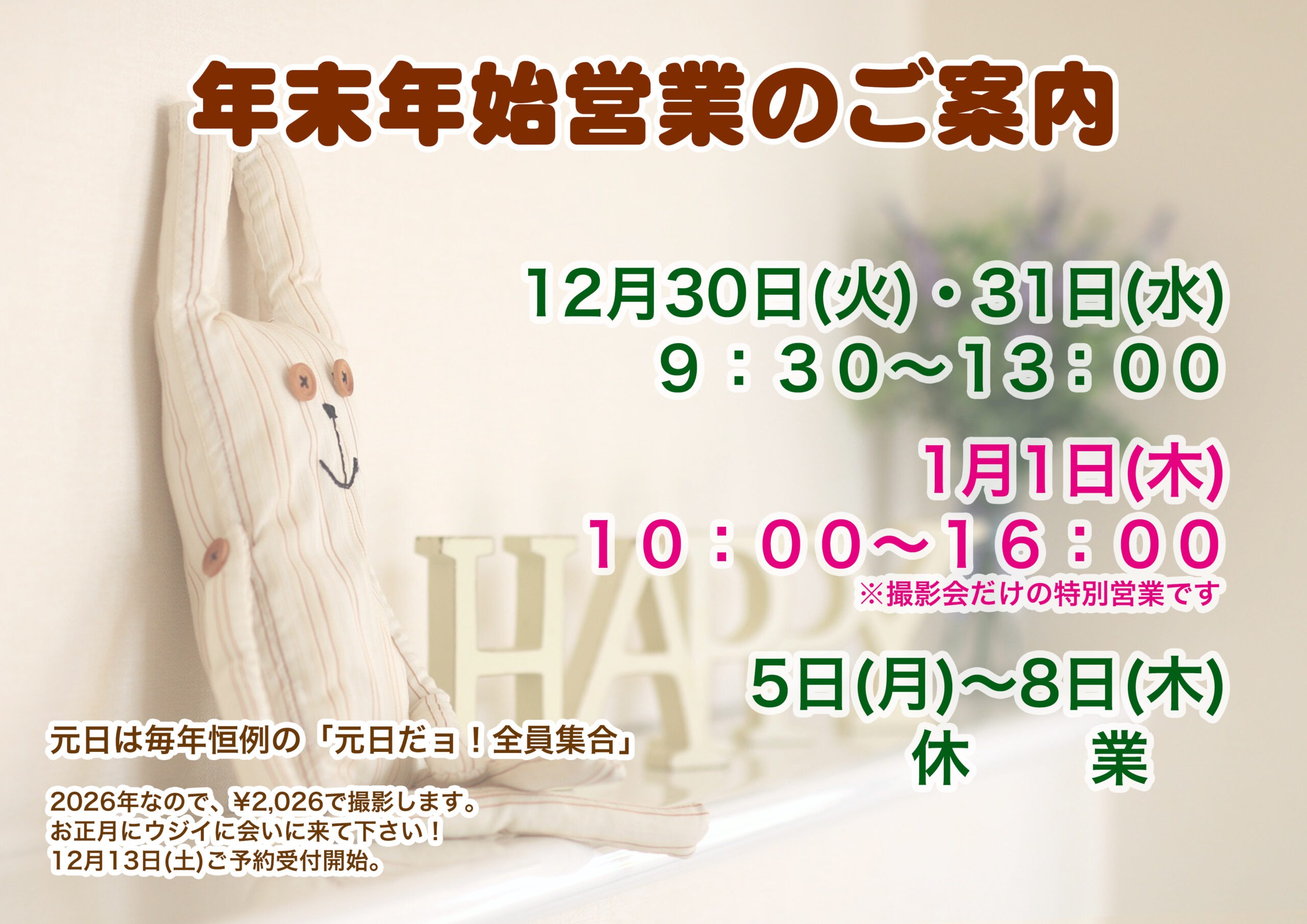 1月1日は午前10時から午後4時まで、特別撮影会です。
