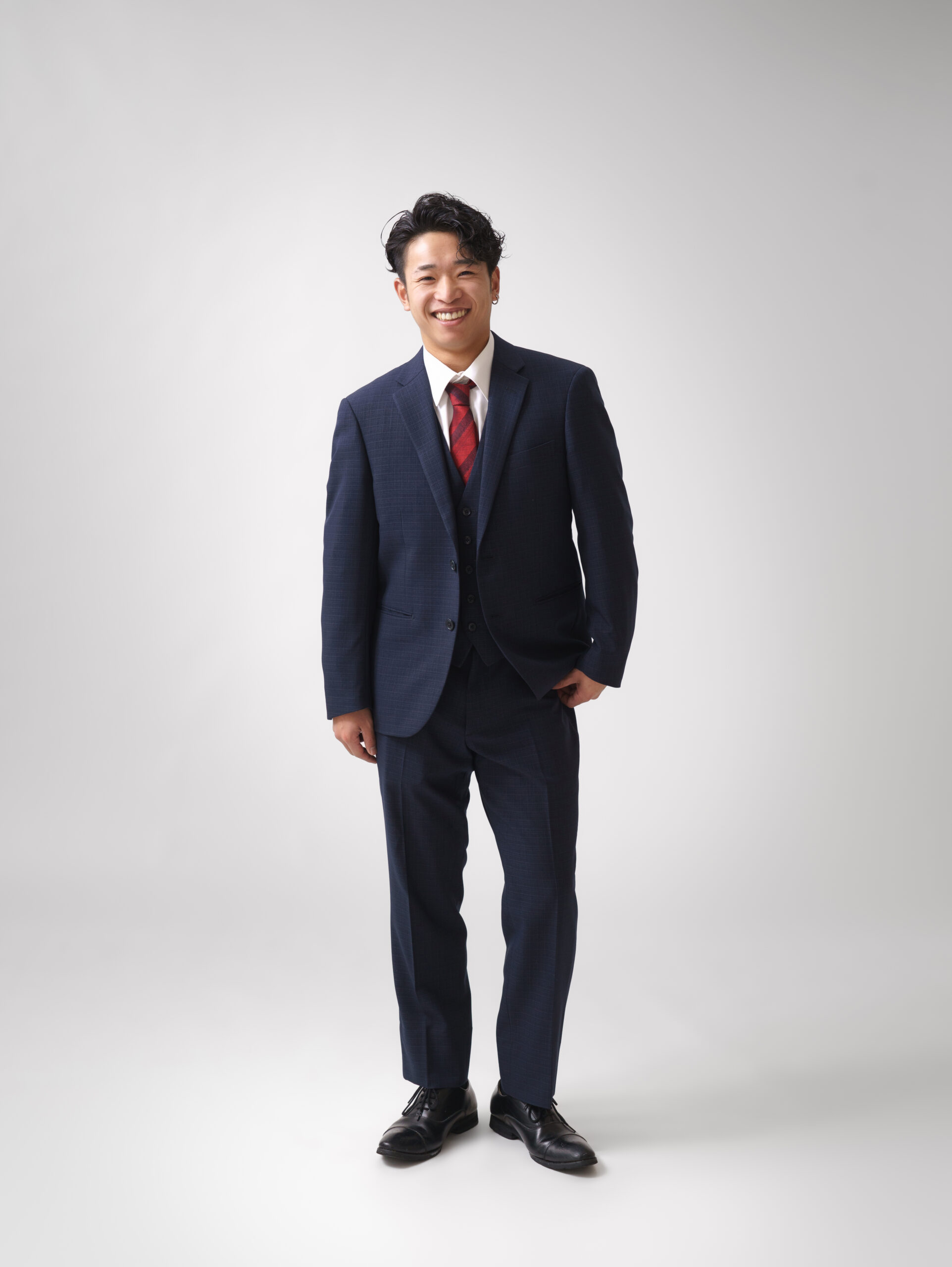 まだ着慣れないスーツ姿もとてもフレッシュ。
